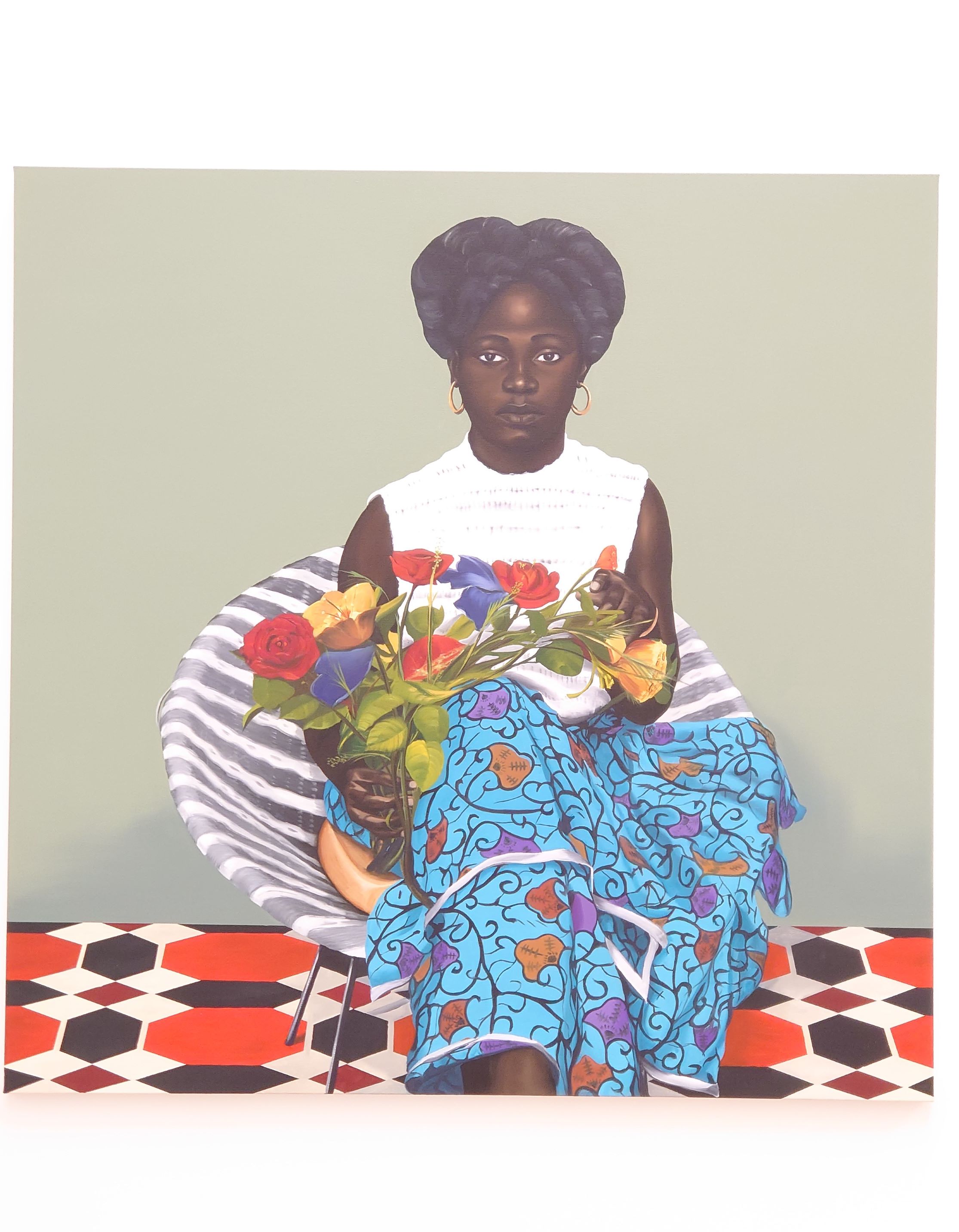 Sie blickt, blickt wohin, dem Künstler in die Augen, am Künstler vorbei. Allein ihn interessieren die Farben der Blumen.